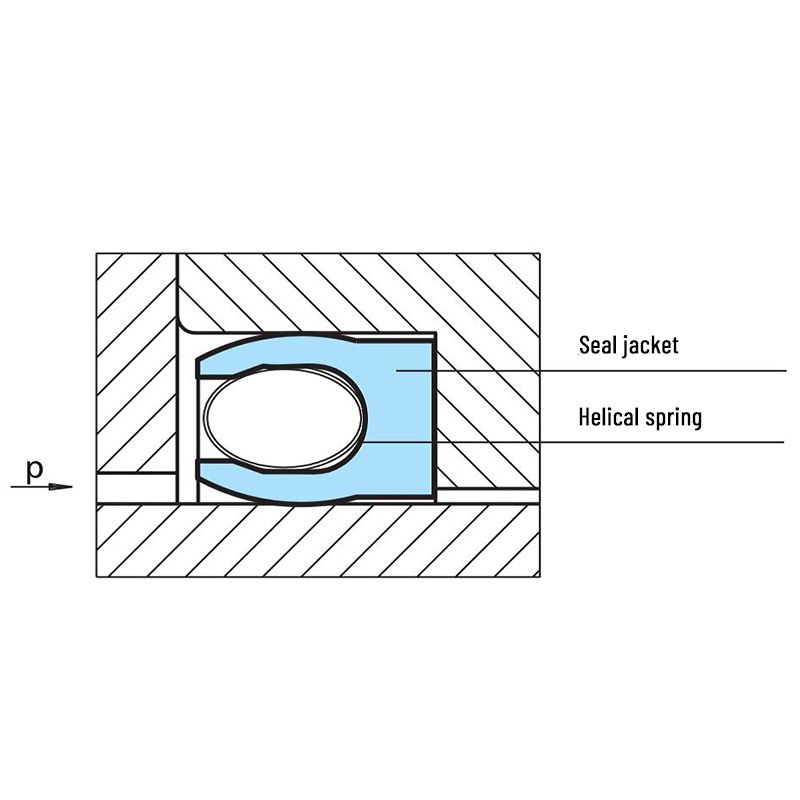 FJSEALS helical spring energized seal is a single-acting seal consisting of a wound corrosion resistant metal spring installed in a U-shaped jacket. The helical shape spring affords a relatively high load versus deflection range resulting in a seal product that provides very tight sealing. This makes it ideal in low pressure, even vacuum applications. As a highly loaded product, helical spring energized seal is ideally suitable when dynamics are very slow or static.