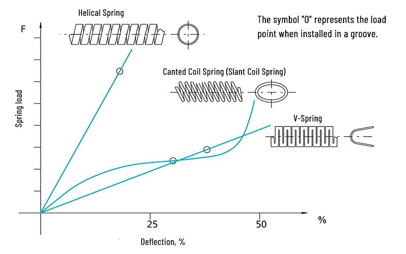 Canted coil springs are made from round wire which is coiled and formed into an elliptical shape on an inclined position. These springs provide near constant spring force within a very wide deflection range. This allows precise control of friction during the service life. Its unique design prevents the seal from damaging the spring due to excessive deformation.