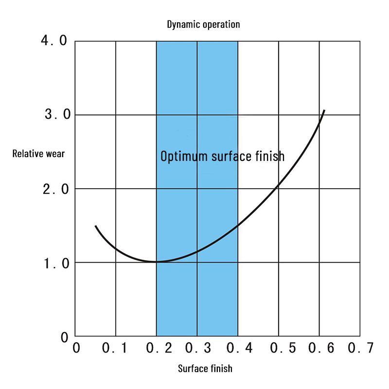 The graph below illustrates the effect of surface finish and relative seal wear.